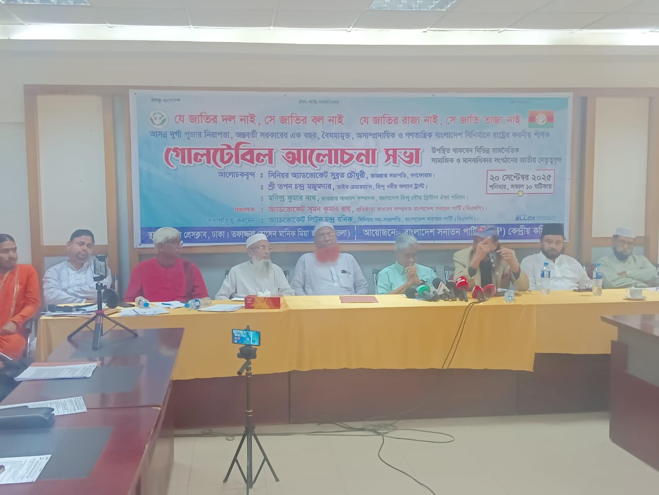 দুর্গা পূজার নিরাপত্তা অন্তবর্তী সরকার-এর এক বছর বৈষম্যমুক্ত, অসাম্প্রদায়িক ও গণতান্ত্রিক বাংলাদেশ বিনির্মানে রাষ্ট্রের করনীয় শীর্ষক আলোচনা সভা অনুষ্ঠিত