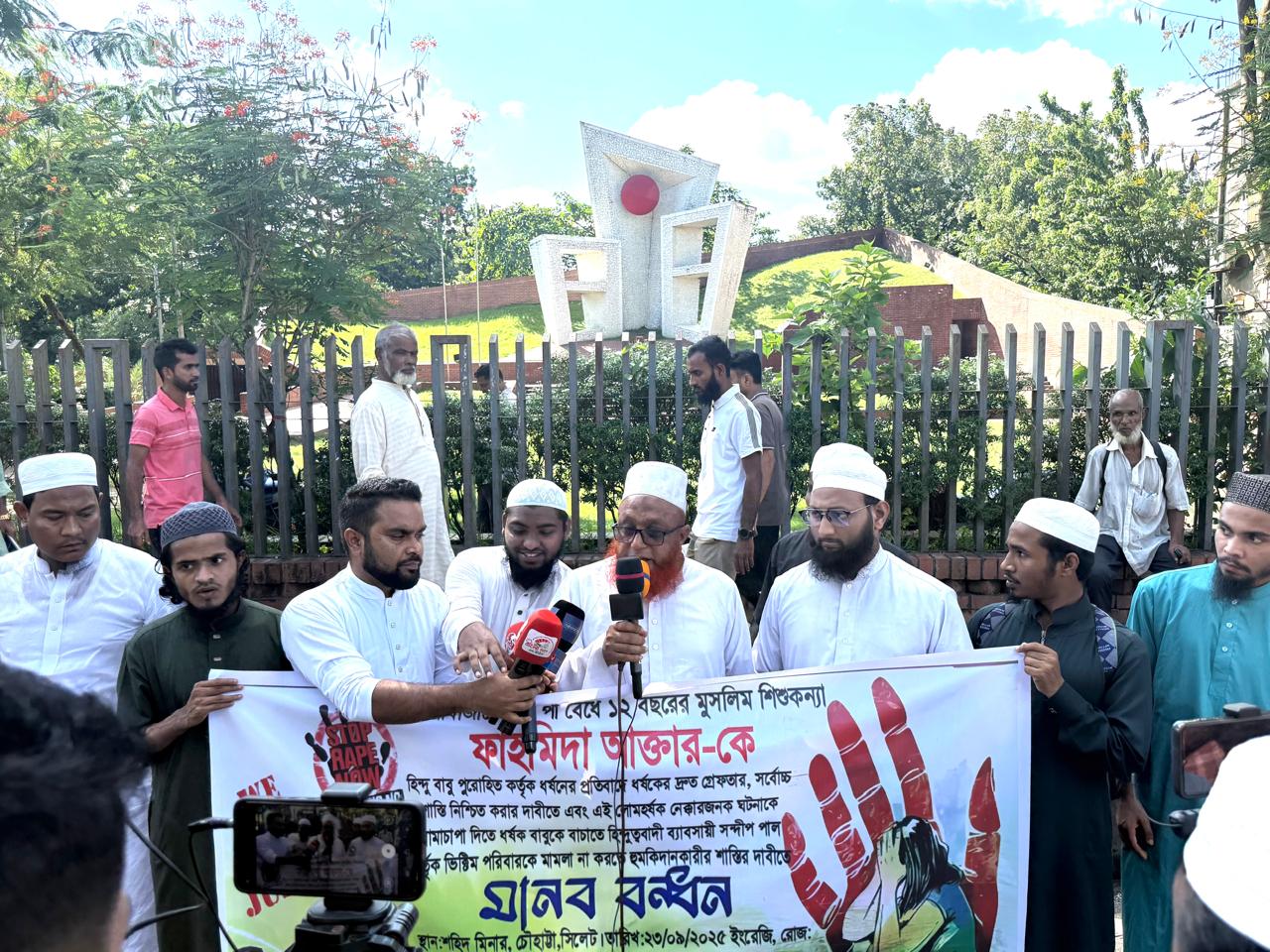 তিনি হুশিয়ারি উচ্চারণ করে বলেন, শান্তিপ্রিয় সিলেটে পরিকল্পিতভাবে ধর্মীয় দাঙ্গা লাগানোর এই অপচেষ্টা আমরা রুখে দিবো। আগামী ৭২ ঘন্টার ভিতরে ধর্ষক হিন্দু বাবু পুরোহিত ও ব্যাবসায়ী সন্দীপ পালসহ দোষীদের গ্রেফতার করতে হবে এবং সর্বোচ্চ শাস্তির আওতায় নিয়ে আসতে হবে।