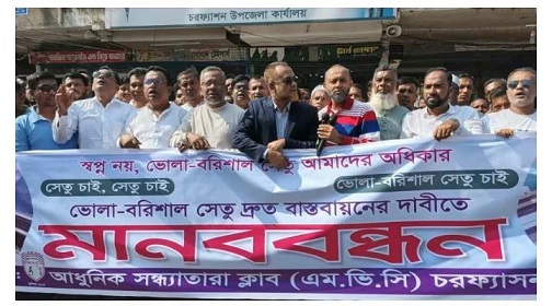ভোলা-বরিশাল সেতুর দাবিতে চরফ্যাশনে মানববন্ধন।